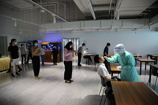 公司疫情防控小组根据员工居住地所处风险等级、各街道办事处对疫情防控工作安排,组织除近日已做过核酸检测或无法离开住所外的全体员工进行核酸检测,做到核酸检测全覆盖,零遗漏,确保在司办公人员健康安全。